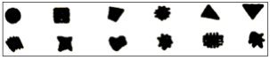 Abstrakt gedacht ist der Punkt ideellklein, ideellrund. Aber ebenso wie seine Größe, so sind auch seine Grenzen relativ. In realer Form kann der Punkt unendlich viele Gestalten annehmen: seine Kreisform kann ganz kleine Zacken bekommen, er kann spitz sein und zum Dreieck neigen. Bei a